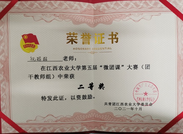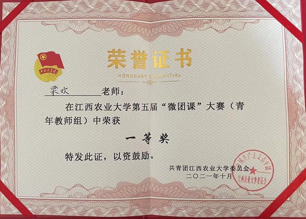 日前,由共青團江西農業(yè)大學委員會主辦,國土與資源環(huán)境學院團委承辦的江西農業(yè)大學第五屆微團課比賽結果公布,經過理論測試與團課講授兩方面的評選,我院青年教師組梁歡老師榮獲一等獎、團干教師組祝超超老師以總分第二的成績榮獲二等獎、學生組徐嘉玲團隊以總分第二的成績榮獲二等獎。