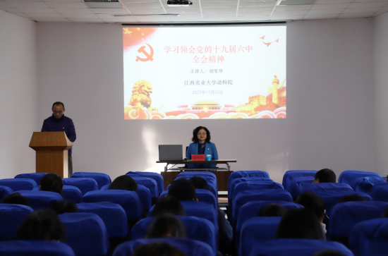 深入學(xué)習(xí)貫徹黨的十九屆六中全會(huì)精神,11月23日,動(dòng)科院邀請(qǐng)馬克思主義學(xué)院博士宣講團(tuán)成員胡軍華副教授為師生黨員宣講黨的十九屆六中全會(huì)精神。