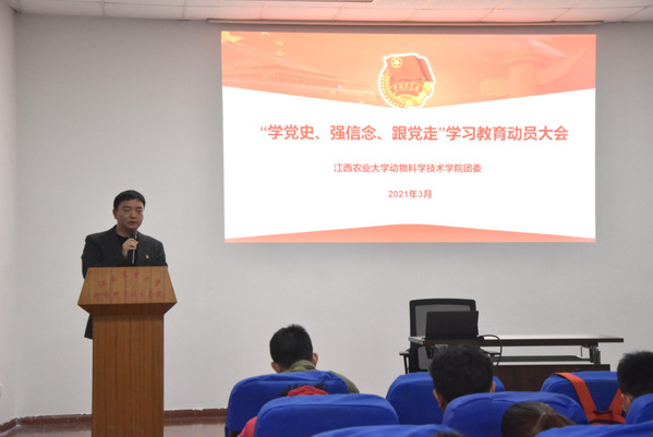 一是及時動員。動物科學技術學院團委在深入學習貫徹習近平總書記在黨史學習教育動員大會上的重要講話精神基礎上,從細從恒貫徹落實團中央和校黨委、校團委關于黨史學習教育各項部署要求,及時召開黨史學習教育動員大會,制定《動物科學技術學院團委黨史學習教育方案》,以翔實史料滋養青年,以精神力量引領青年,讓團員青年學黨史、守初心,爭做堪當大任的時代新人。