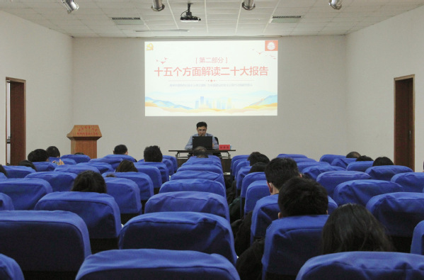 為教育引導學員深入學習貫徹黨的二十大精神。11月8日,校黨委委員、副校長張高亮從大會盛況、十五個方面解讀二十大報告、學習貫徹黨的二十大精神三個方面為全體學員宣講黨的二十大精神,強調貫徹黨的二十大精神要在全面學習上下功夫、在全面把握上下功夫、在全面落實上下功夫。