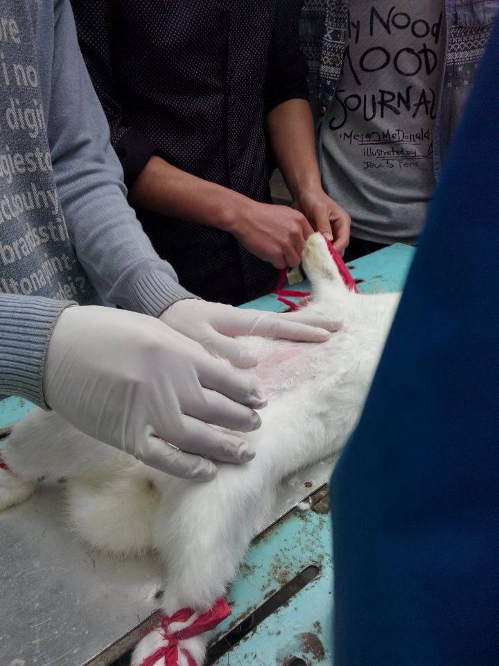 畜禽傳染病興趣小組做解剖兔子試驗(yàn)