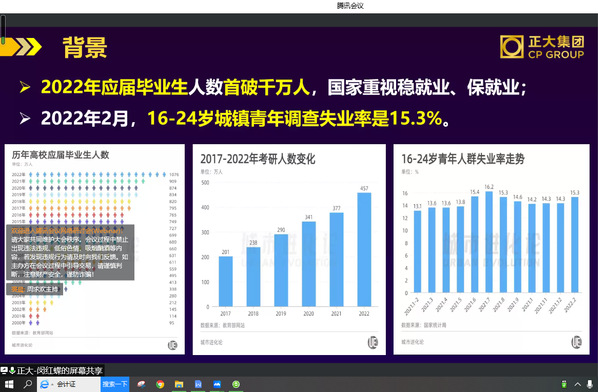 5月22日,由中國青年就業(yè)創(chuàng)業(yè)基金會、共青團(tuán)江西農(nóng)業(yè)大學(xué)委員會、正大集團(tuán)江西區(qū)聯(lián)合主辦,我院團(tuán)委承辦的“正大杯”2022年大學(xué)生就業(yè)創(chuàng)業(yè)實戰(zhàn)大賽江西農(nóng)業(yè)大學(xué)賽區(qū)線上啟動會落下帷幕。校團(tuán)委副書記王成斌、我院黨委副書記陳小志、南昌正大總經(jīng)理程理進(jìn)出席,百余名學(xué)生參加會議。南昌正大人事主管周求歡主持會議。