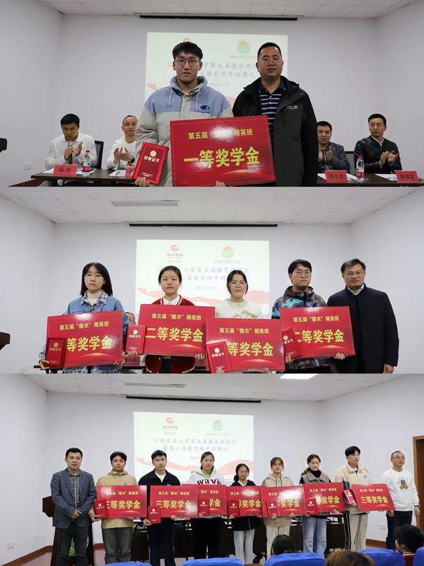 為進(jìn)一步發(fā)揮行業(yè)的資源優(yōu)勢,拓展校企合作渠道,優(yōu)化校企協(xié)同育人模式,11月15日晚,我院于201報(bào)告廳舉行第五屆傲農(nóng)班結(jié)業(yè)暨第六屆傲農(nóng)班開班儀式。我院黨委書記王義華、黨委副書記陳小志,傲農(nóng)集團(tuán)監(jiān)事、人力資源中心總經(jīng)理匡俊、傲農(nóng)集團(tuán)江西傲航總經(jīng)理李小龍、傲農(nóng)集團(tuán)人力資源中心人才開發(fā)部總監(jiān)羅波文出席,第五、六屆傲農(nóng)班全體學(xué)員參加此次會(huì)議,學(xué)工辦主任陳冬主持儀式。