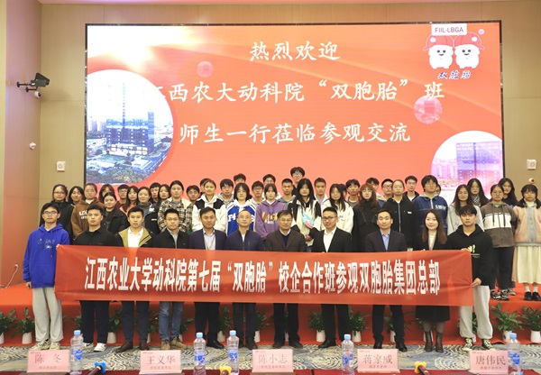 11月11日,第七屆“雙胞胎”校企合作班的學員們來到雙胞胎集團進行參觀學習。雙胞胎集團招聘調配部部長石賀龍、集團養豬干部部部長唐偉民、添加劑采購部部長鄒曉軍、飼料與服務負責人熊楊輝出席活動并做經驗分享,動物科學技術學院黨委書記王義華、黨委副書記陳小志、學工辦老師陳冬和蔣家威,第七屆“雙胞胎班”成員及各學生代表參加,并現場推介畢業生應聘。