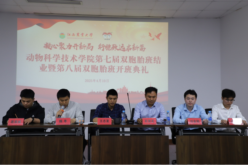 為深入落實產(chǎn)教融合戰(zhàn)略,持續(xù)鞏固校企合作育人成果,2025年4月10日,江西農(nóng)業(yè)大學(xué)動物科學(xué)技術(shù)學(xué)院第七屆“雙胞胎班”結(jié)業(yè)暨第八屆“雙胞胎班”開班儀式在動科院院辦201報告廳舉行,會議由院學(xué)工辦陳冬老師。
