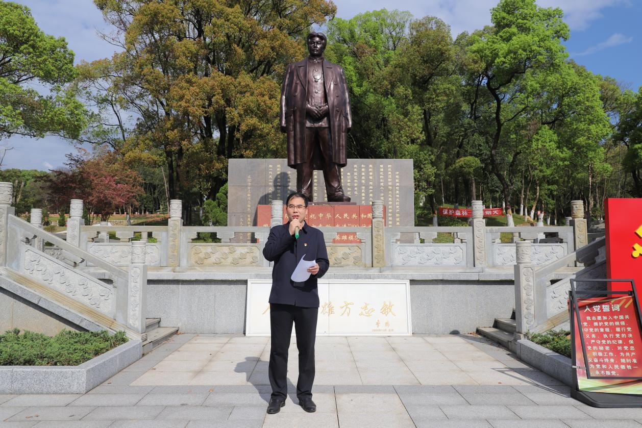 “我們熱血沸騰,熱淚流淌,無盡的思念,化作無比的力量……”梅嶺山麓下,在烈士陵園內(nèi),樹木環(huán)抱,蓊郁蔥翠,莊嚴肅穆。150余人在方志敏烈士雕像前神情肅穆地佇立,肅穆恭敬,大學生骨干培訓班學員代表飽含深情誦讀《清明的雨》。