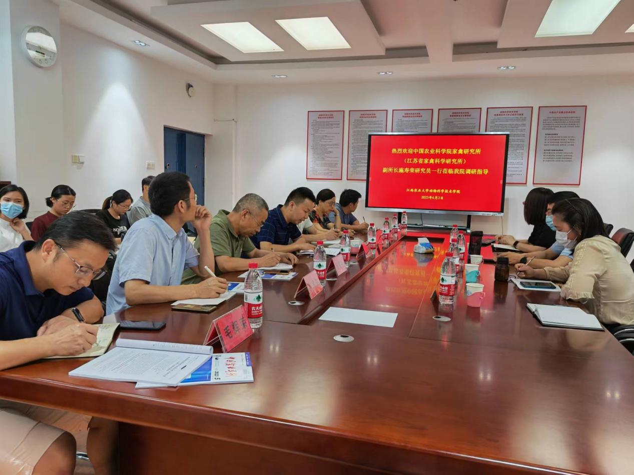 2023年6月2日下午,中國農(nóng)業(yè)科學(xué)院家禽研究所(江蘇省家禽科學(xué)研究所)副所長施壽榮研究員一行4人來我院交流。學(xué)院副院長吳小波、現(xiàn)代畜牧產(chǎn)業(yè)學(xué)院副院長黎觀紅及家禽相關(guān)學(xué)科教師代表參加了座談會。