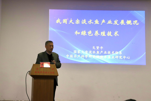 2月22日下午,南京農業大學博士生導師、國家大宗淡水魚產業技術體系首席科學家、中國科學技術協會全國淡水魚水產養殖學首席科學傳播專家、中國水產科學研究院淡水漁業研究中心黨委書記戈賢平研究員一行應邀來我院調研。戈賢平作了題為《我國大宗淡水魚產業發展概況和綠色養殖技術》的專題學術報告,報告會由副院長郭小權主持,我院百余名師生參加了報告會。