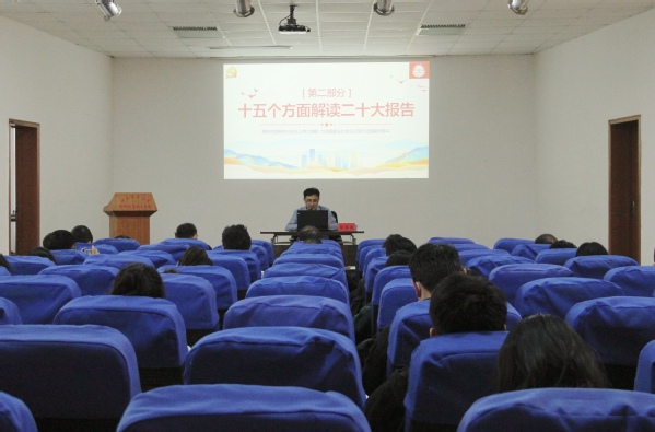 張高亮緊扣宣講主題,聯(lián)系實際,從大會盛況,過去5年的工作和新時代10年的偉大變革,馬克思主義中國化時代化、中國式現(xiàn)代化、全面建設(shè)社會主義現(xiàn)代化國家的目標(biāo)任務(wù),深刻領(lǐng)會把握黨的二十大的精神實質(zhì)等方面,進(jìn)行了系統(tǒng)宣講和闡釋。張高亮指出,學(xué)習(xí)宣傳貫徹黨的二十大精神,是當(dāng)前和今后一個時期全校上下的首要政治任務(wù),全體師生要在全面學(xué)習(xí)上下功夫、在全面把握上下功夫、在全面落實上下功夫,尤其注重四個“學(xué)”:一是要帶著政治覺悟反復(fù)學(xué),學(xué)出理想信念來;二是要對照系列講話結(jié)合學(xué),學(xué)出真情實感來;三是要立足本職崗位研究學(xué),學(xué)出本事本領(lǐng)來;四是要把握目標(biāo)重點學(xué),學(xué)出職責(zé)使命來。