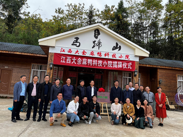 11月9日,由我院青年教授劉平牽頭搭建的“江西大余麻鴨科技小院”在大余馬蹄山生態農業開發有限公司順利舉行了揭牌儀式。省科協黨組成員、副主席蔡震峰和大余縣常委副縣長陳亮共同為大余麻鴨科技小院揭牌,省科協院士專家服務中心副主任閔琪、省科協院士專家服務中心部長李雯、江西農業大學科技處副處長彭劍峰等領導出席,江西省農業科學院原副院長謝金防、我院院長胡國良、副院長郭小權,相關教師及駐院研究生代表參加儀式。大余馬蹄山生態農業開發有限公司負責人盧致峰主持儀式。