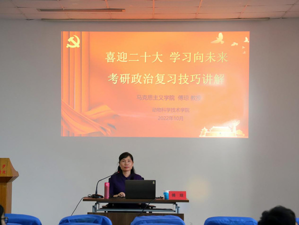 為更好地迎接黨的二十大,引導(dǎo)廣大考研學(xué)子科學(xué)備考,提高大家政治應(yīng)試水平。10月13日,我院就業(yè)升學(xué)黨小組承辦“喜迎二十大,學(xué)習(xí)向未來(lái)”考研政治輔導(dǎo)講座,2019級(jí)考研學(xué)生、2020級(jí)學(xué)生參加,特邀馬克思主義學(xué)院傅瓊教授講授課程。