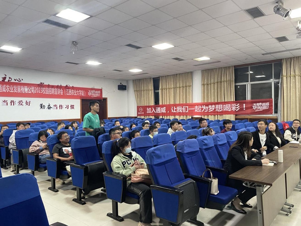 為迎接黨的二十大勝利召開,推進2023屆畢業生實現更充分更高質量就業,學院在調研畢業生就業去向的基礎上,滿足疫情防控要求的同時積極為學生謀劃就業工作,十月正式啟動學院線下招聘會,截止目前我院成功舉辦南昌通威生物科技有限公司、福建傲農生物科技集團股份有限公司、廣州利洋水產科技股份公司三場專場校園宣講會。