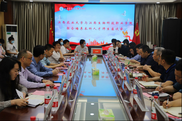 6月1日下午,院長胡國良、院黨委副書記陳小志、副院長吳小波等一行6人赴江西生物科技職業學院,開展聯合培養本科考研培訓工作。江西生物科技職業學院黨委副書記劉順華主持會議,江西生物科技職業學院有關職能部門負責人、動醫(聯培)1901班及水產(聯培)1901班全體同學參加培訓會。
