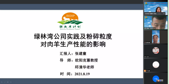 會上,我院動物營養與飼料科學碩士研究生張建童、孫夢雪分別做《綠林灣公司實踐及粉碎粒度對肉羊生產性能的影響》、《煙酸對低pH誘導瘤胃上皮細胞凋亡的保護機制研究》報告。