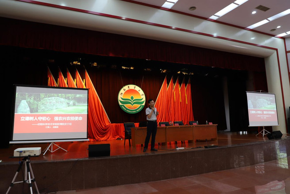 學(xué)院黎觀紅教授、鄧舜洲教授、劉寶生副教授、熊六鳳副教授分別代表動(dòng)物科學(xué)、動(dòng)物醫(yī)學(xué)、動(dòng)物藥學(xué)和水產(chǎn)養(yǎng)殖學(xué)四個(gè)專業(yè),從師資隊(duì)伍、專業(yè)發(fā)展、教學(xué)實(shí)踐、人才培養(yǎng)等全方面地介紹了各專業(yè)的基本情況。互動(dòng)提問環(huán)節(jié),同學(xué)們就考研問題、就業(yè)前景問題與老師們相互討論,現(xiàn)場氣氛熱烈。介紹會(huì)后,全體新生參觀了各專業(yè)實(shí)驗(yàn)室,在老師們的講解下,對(duì)實(shí)驗(yàn)室的基本情況和基礎(chǔ)實(shí)驗(yàn)操作有了初步的認(rèn)識(shí)。