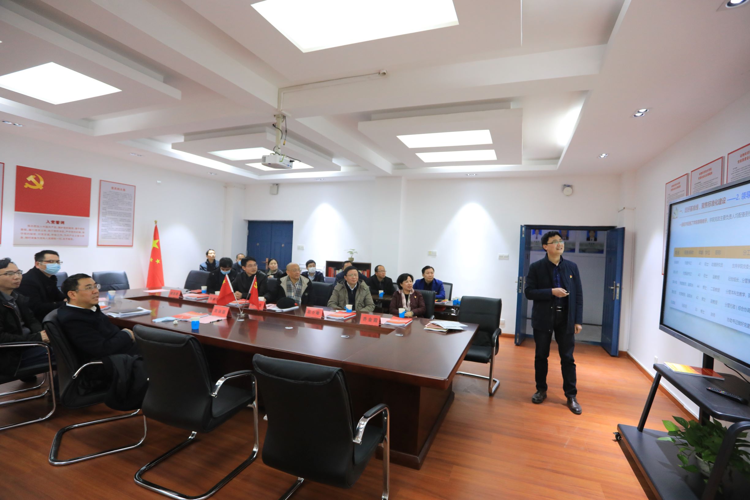 周訓國對學院開展基層黨建“三化”工作以來取得成績表示了充分肯定,對黨建經費使用管理、黨員發展、黨員培訓教育和管理、黨員政治生活、黨員服務等工作提出改進和完善的具體指導意見。周訓國指出,要堅持繼承和創新,結合以往基層黨建工作的成功經驗和做法、新形勢下的黨建要求和部署,完善“三化”建設的舉措;要堅持對標對表,堅持以習近平新時代中國特色社會主義思想為指導,堅持問題導向、形成問題清單、制定改進措施、形成品牌效應,切實提升基層黨建水平。