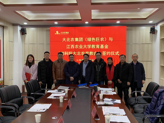 12月16日,大北農(nóng)——大佑吉集團常務(wù)副總裁、綠色巨農(nóng)董事長談松林等一行專程來訪我校與教育基金會舉行“動物科學技術(shù)學院大北農(nóng)獎教金”簽約儀式。我校黨委副書記、校教育基金會理事長郭新春、校友辦主任朱小玉及動科院領(lǐng)導班子出席簽約儀式。綠色巨農(nóng)江西區(qū)總經(jīng)理王凱元、人力資源部經(jīng)理談慧敏和我校教育基金會主任朱小玉、動科院院長胡國良分別代表雙方簽約。