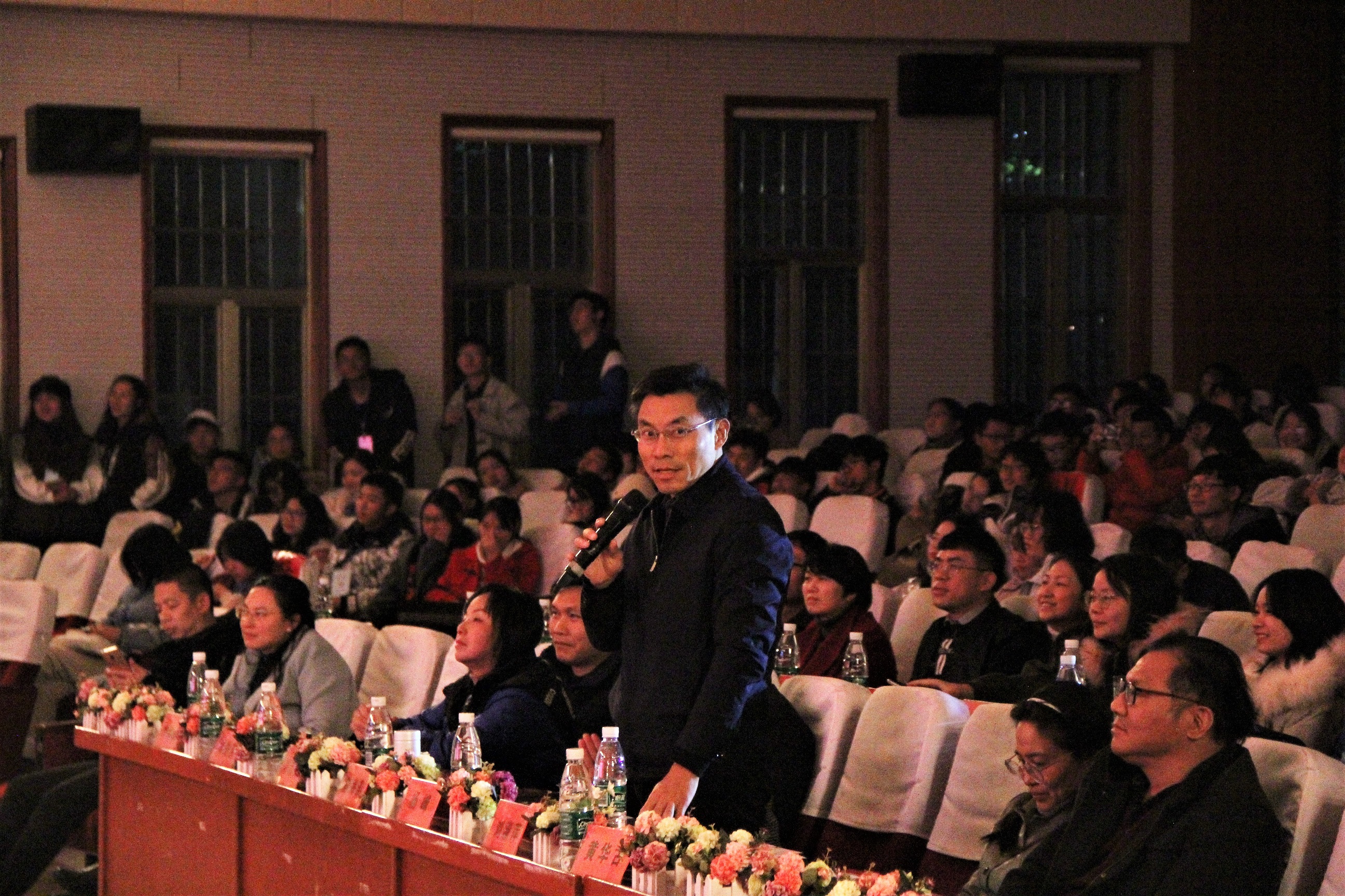 為宣傳普及心理健康知識,進一步營造健康向上的校園心理文化,12月10日晚,由我校學生工作處主辦、我院承辦的2019年校園心理情景劇大賽于逸夫報告廳圓滿落幕。江西財經大學心理咨詢中心主任唐海燕、江西科技師范大學心理咨詢中心主任劉淑萍、東華理工大學心理咨詢中心主任劉俊莎、我校黨委委員宣傳部部長楊峰、江西農業大學附屬中學黨支部書記黃華古、我校教學質量評估與監管中心主任劉志兵、我校學工處副處長心理咨詢中心主任李海峰擔任此次大賽的評委,各學院黨委副書記及輔導員老師出席活動,七百多名同學到場觀看。