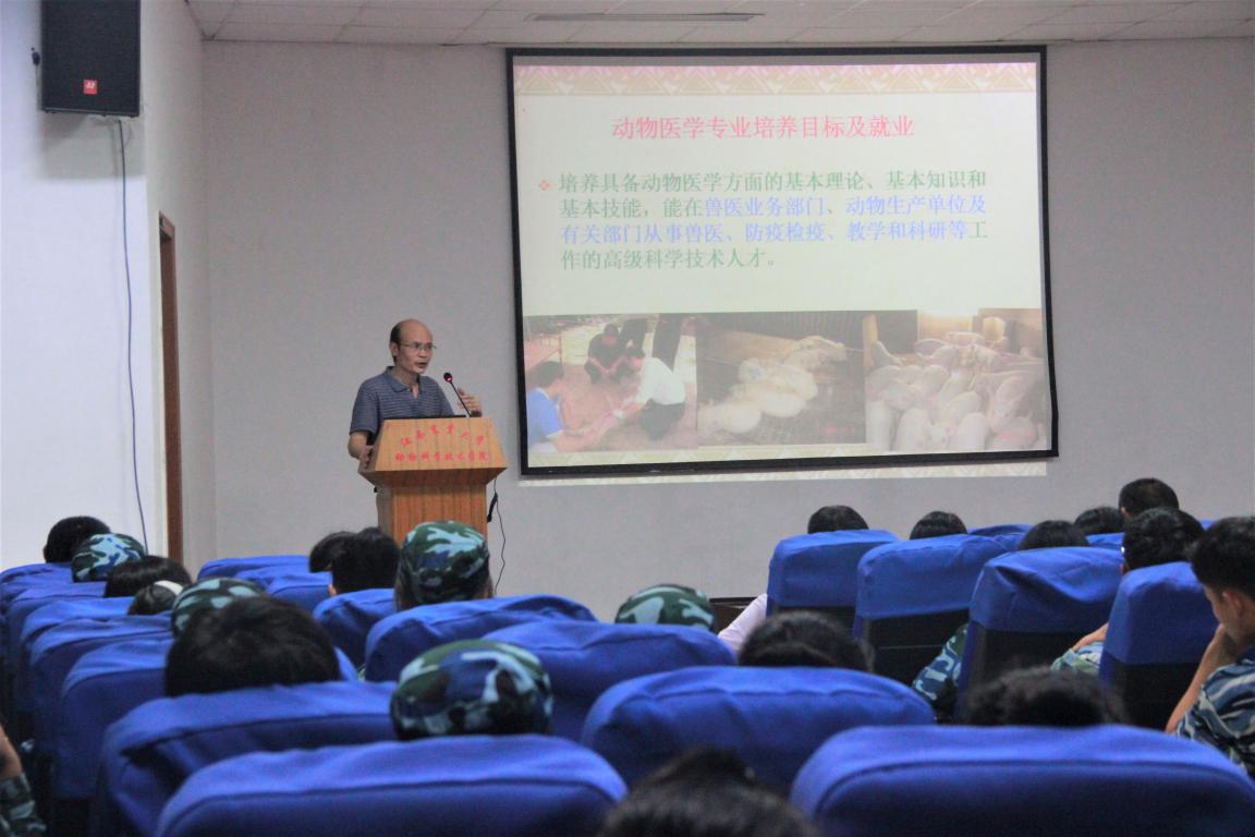 院長胡國良代表學院對2018級新生表示熱烈歡迎,向新生詳細介紹了學校百年校史、學院八十年發展歷程和教學科研、杰出校友等情況,鼓勵新生要秉承優良院風,早日規劃好人生目標,刻苦學習,為做社會有用之才打下堅實基礎。舒鄧群教授、鄧舜洲教授、劉寶生副教授和熊六鳳副教授分別代表動物科學、動物醫學、動物藥學及水產養殖學四個專業,從師資隊伍、教學實踐、學科建設、專業前景、興趣小組活動等方面進行了詳細介紹。