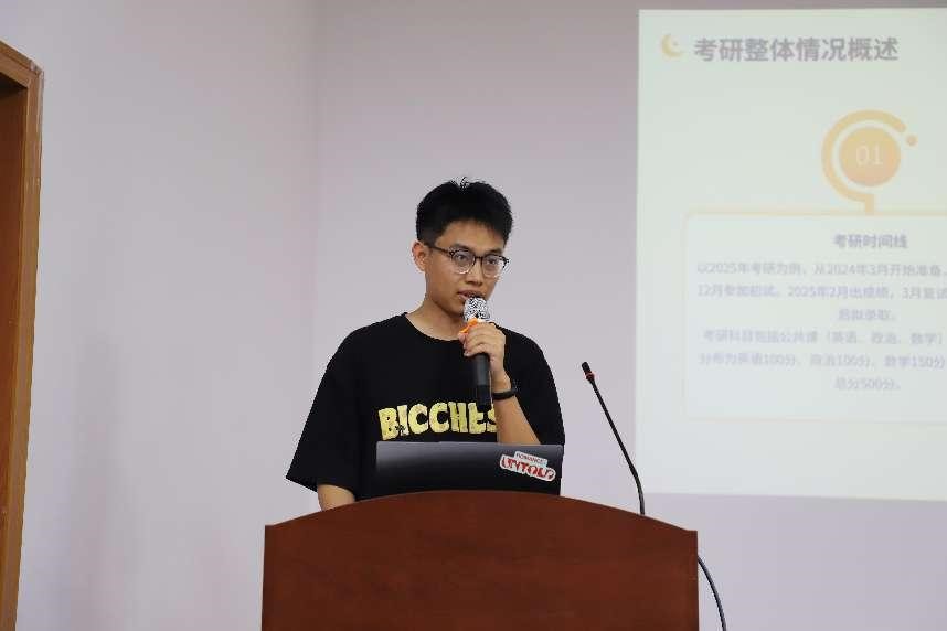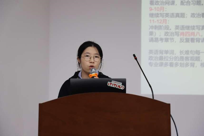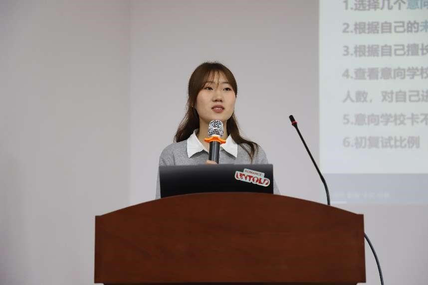 在隨后的經(jīng)驗分享環(huán)節(jié),肖蕾以“時間管理與資源整合”為主題,詳細介紹了如何平衡課程學習與備考復(fù)習,并推薦了考研復(fù)習的工具與平臺。“考研是一場信息戰(zhàn),”她建議學弟學妹“善用院校官網(wǎng)、與導(dǎo)師資源,主動搜索考研復(fù)習資料”。