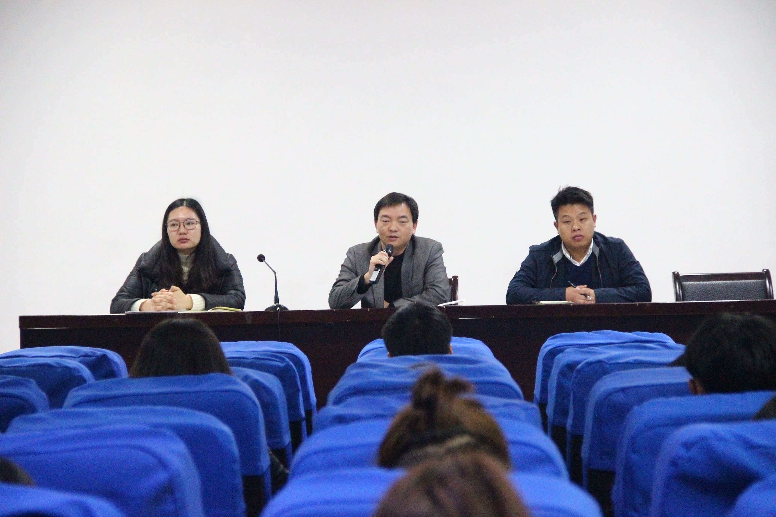 值此全國兩會召開之際,為全面落實兩會期間穩定工作的總體要求、保障新學期我院各項學生工作的順利開展,3月6日晚,我院全體學生干部大會于院辦201報告廳召開。院團委書記管國泉、學工辦老師蔡敏茜和王稀珍出席大會,全體學生黨員及學生干部到場參會。