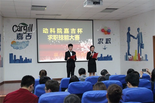 為了提高廣大同學(xué)的求職水平,增強(qiáng)就業(yè)技能,江西農(nóng)業(yè)大學(xué)動(dòng)物科學(xué)技術(shù)學(xué)院攜手嘉吉飼料南京有限公司共同舉辦“第三屆嘉吉杯求職技能大賽”。4月17日晚,嘉吉杯求職技能大賽決賽在院辦201報(bào)告廳順利舉行,此次比賽經(jīng)過初選報(bào)名,復(fù)式海選,共有16名高年級(jí)同學(xué)經(jīng)過層層選拔進(jìn)入最終決賽。擔(dān)任本次大賽的評(píng)委和嘉賓有嘉吉飼料南京有限公司商務(wù)總經(jīng)理易慧強(qiáng),人事部經(jīng)理李國(guó)穎,事業(yè)發(fā)展經(jīng)理吳光華、朱永松,校招生就業(yè)處處長(zhǎng)黃維柳,院黨委副書記楊秀江及學(xué)工辦老師楊靜。