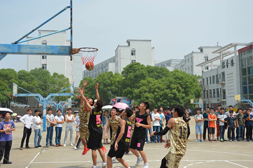 4月28日,南區籃球場激情似火,我院男籃與軟件院男籃四強爭奪戰在此拉開。院黨委副書記楊秀江及院學工辦老師楊靜親臨現場加油。