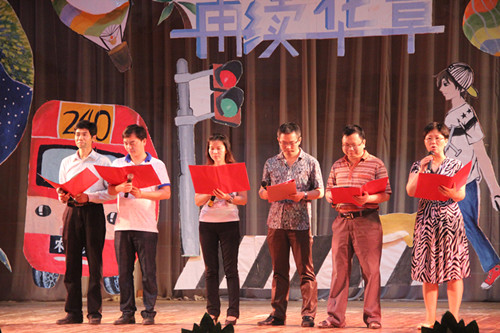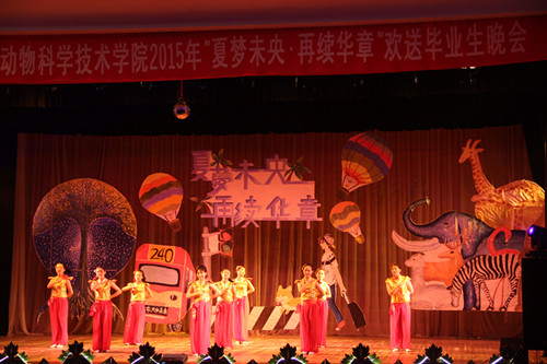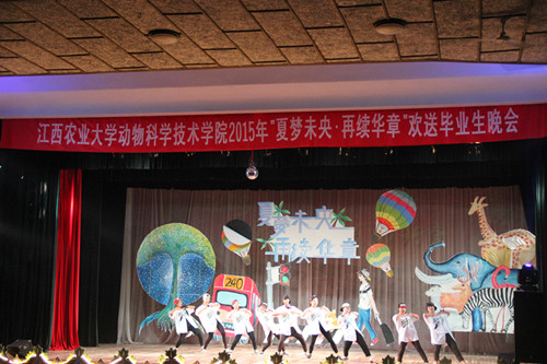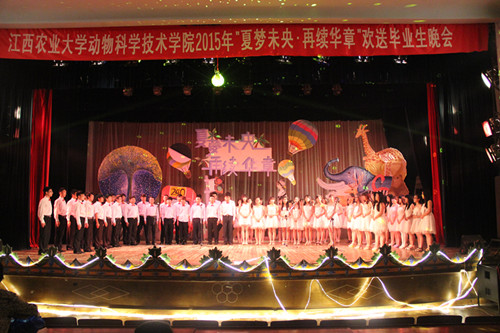 5月25日晚我院2015“夏夢未央 再續(xù)華章”畢業(yè)生晚會在校大禮堂隆重舉行。我校副校長許斌華,校黨委宣傳部部長黎瑛,校學工部部長、學工處處長左輝群、校研究生處黨總支書記熊紅華蒞臨晚會現(xiàn)場。同時動科院院長瞿明仁,院黨委副書記楊秀江,副院長丁能水與2011級各班班主任齊聚一堂,共同觀看了本場晚會。