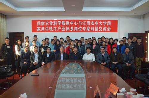 2015年3月28日,江西農業大學江西省動物營養重點實驗室與國家農業科學數據中心對接交流會在動物營養樓會議室舉行。國家農業科學數據中心首席科學家孟憲學研究員、中國飼料數據庫情報網中心主任熊本海研究員等一行7人與國家肉牛牦牛產業體系崗位專家瞿明仁教授全體團隊成員參加了交流會。