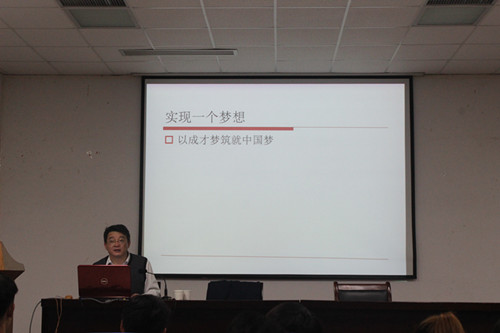 左處長首先從社會主義核心價值體系為切入點,深入細致的講解了社會主義核心價值觀的意義,對當代大學生在價值觀的判斷和取向存在的困惑做出了解釋,配以生動具體的事例,并把晦澀難懂的觀點剖析的形象鮮明。隨后,他針對學生干部應如何以實際行動去踐行社會主義核心價值觀展開討論并鼓勵大家要積極樹立三種意識:思想引領意識;敢于擔當意識;志愿服務意識。對于學生干部這一特殊群體,還應該具備以下兩種能力:凝聚同學能力和上下溝通的能力。最后,左處長希望學生干部努力奮斗,實現一個夢想---以成才夢鑄就中國夢。