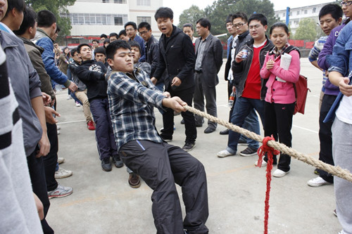 4月25日中午,我院拔河比賽的半決賽及決賽在北區足球場成功舉行。院黨委副書記楊秀江、學工辦楊靜老師出席本次比賽。