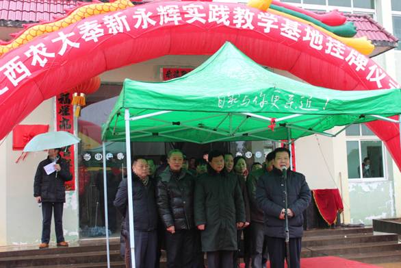 2012年12月29日,動科院與奉新永輝生態養殖有限公司簽訂合作協議共同成立“江西農業大學奉新永輝實踐教學基地”。江西省農業廳原黨委書記肖茂普和畜牧局畜牧處處長劉亮為基地揭牌。校教務處處長何后軍和奉新縣副縣長鄔明香分別代表學校和奉新縣政府致辭。動科院副院長游金明和永輝公司董事長萬紹榮簽訂協議,動物科學、水產養殖專業部分教師代表出席儀式并與公司員工就生產中遇到的實際問題進行了廣泛的交流。