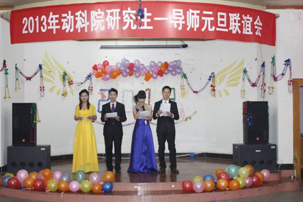12月28日下午,在新年即將到來之際,我院“2013年研究生—導(dǎo)師元旦聯(lián)誼會(huì)”在校工會(huì)俱樂部隆重舉行。校研究生處處長曾志將、黨總支書記熊紅華、教務(wù)處處長何后軍、圖書館館長胡國良、動(dòng)科院院長瞿明仁、黨委書記陸偉、副院長游金明出席聯(lián)誼會(huì)。瞿明仁院長和熊紅華書記分別代表學(xué)院和研究生處致新年賀辭。