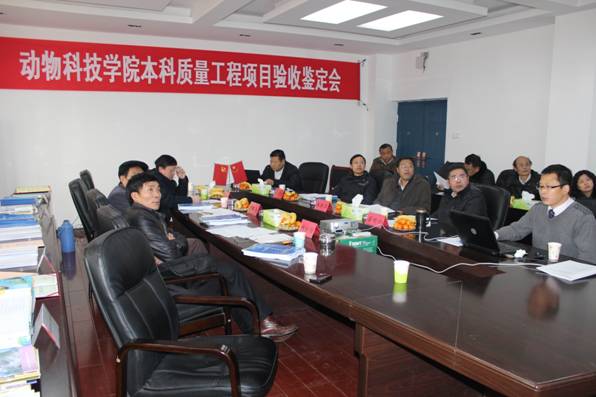 1月12日,受教育廳委托,我校組織省高等教育評(píng)估所、省農(nóng)科院等專家對(duì)我院承擔(dān)的“動(dòng)物科學(xué)國(guó)家二類特色專業(yè)”、“動(dòng)物醫(yī)學(xué)省級(jí)特色專業(yè)”、“動(dòng)物營(yíng)養(yǎng)學(xué)省級(jí)教學(xué)團(tuán)隊(duì)”、“動(dòng)物遺傳育種應(yīng)用型人才培養(yǎng)模式創(chuàng)新實(shí)驗(yàn)區(qū)”4個(gè)本科質(zhì)量工程項(xiàng)目進(jìn)行了驗(yàn)收鑒定。在聽(tīng)取項(xiàng)目匯報(bào),提出質(zhì)詢及查閱成果材料后,專家組對(duì)項(xiàng)目的建設(shè)成效給予了高度評(píng)價(jià),并一致同意驗(yàn)收結(jié)題。副校長(zhǎng)潘曉華出席會(huì)議并講話。