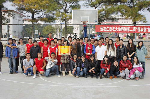 12月14日中午,我院“恒豐強杯”籃球決賽在北區籃球場圓滿落幕。我院黨委副書記楊秀江,院團委書記管國泉,學工辦老師楊靜;動醫092班班主任宋小珍及動科1001班班主任熊小文老師也來到現場觀看了比賽。