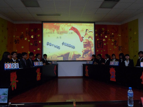 經(jīng)過初賽和復(fù)賽的嚴格篩選,由動科院團委主辦的第三屆黨團知識競賽決賽于24日晚7點在院201報告廳如期舉行,院學(xué)工辦老師楊靜,我院學(xué)生會主席王成斌以及應(yīng)邀的各院團委副書記蒞臨了本場比賽。