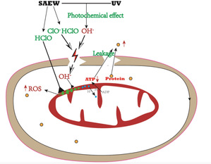 論文是團隊在之前研究中發現微酸性電解水和紫外線結合可發生光化學效應,產生協同作用,并在一定雞糞干擾下仍對雞場中各設施設備具有高效殺菌效果的基礎上,深入研究該方法對沙門氏菌的殺滅效果,滅活模型和機理,發現該方法可多方面破壞沙門氏菌:可破壞細菌細胞膜,積累細菌胞內ROS水平,降低細菌線粒體功能。