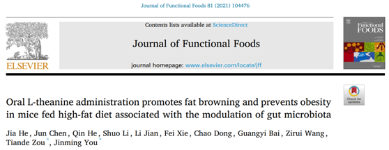 近期,我院游金明教授團隊在國際期刊《Journal of Functional Foods》(農林科學2區)在線發表了題為“Oral administration promotes fat browning and prevents obesity in mice fed high-fat diet associated with the modulation of gut microbiota”的研究論文。游金明教授和鄒田德助理研究員為共同通訊作者,動物營養與飼料科學碩士研究生何嘉為第一作者。
