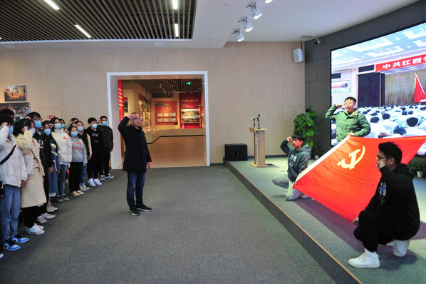 展覽館前,“一會(huì)一演”黨小組成員代表朗誦詩(shī)歌《請(qǐng)黨放心 強(qiáng)農(nóng)有我》,“牢記強(qiáng)農(nóng)興農(nóng)使命擔(dān)當(dāng),立志強(qiáng)農(nóng)興農(nóng),踐行知農(nóng)愛農(nóng),在劈波斬浪中開拓前進(jìn),在披荊斬棘中開辟天地,在攻堅(jiān)克難中創(chuàng)造業(yè)績(jī)!”一句句鄭重有力的誓言,彰顯著新時(shí)代中國(guó)青年的志氣、骨氣、底氣?,F(xiàn)場(chǎng)全體黨員還面向黨旗,莊嚴(yán)宣誓。