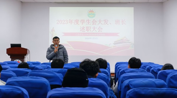 1月5日晚,我院于院辦201報告廳舉行學生組織主要干部和班長述職大會。院學工辦主任陳冬、輔導員蔣家威出席會議,院學生會和大學生發展與服務中心委員、各年級班長依次匯報學期工作并接受評議。