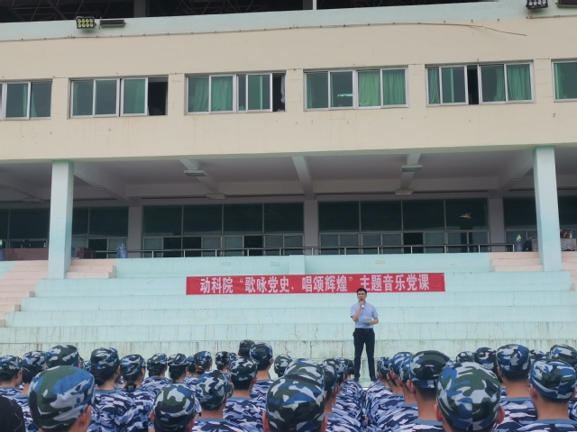 親愛的中國共產(chǎn)黨,我想對你唱。學院黨委創(chuàng)新黨史學習教育形式,開展“歌詠黨史,唱頌輝煌”主題音樂黨課,精心選取《沒有共產(chǎn)黨就沒有新中國》和《歌唱祖國》兩首歌曲,黨支部書記、輔導員、學生黨員一起研討歌曲背后孕育的愛國之聲、人民之心、民族之魂,由優(yōu)秀學生黨員通過朗誦的方式傳遞給每位新生,最后全連齊聲唱響歌曲,表達對黨和祖國的感激之情和美好祝愿,達到“選擇一首好歌,領悟一種精神,唱出一種信仰,凝聚一股力量”的目的。黨委書記張高亮在活動中勉勵青年學子要以實現(xiàn)中華民族偉大復興為己任,增強做中國人的志氣、骨氣、底氣,不負時代,不負韶華,不負黨和人民的殷切期望!
