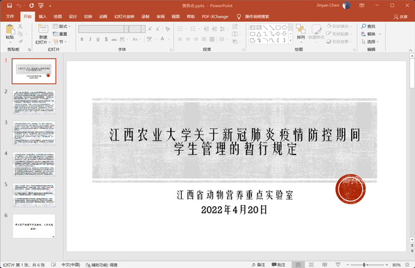 各學科點負責人分別組織學生通過播放宣講幻燈片、朗讀條例、自主學習等形式開展線上學習,帶領同學們認真學習《江西農業大學疫情防控期間學生管理暫行規定》文件內容,要求大家嚴格遵守學校疫情防控規定、配合核酸檢測、做好日常自我防護、落實體溫打卡工作。