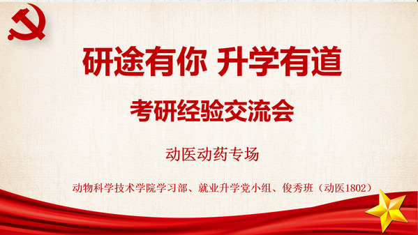 疫情當前學生學習心理壓力加大,為充分發揮朋輩引領作用,幫助我院考研學子明確考研目標、掌握考研技巧,引導大家積極備考,5月1日我院學生會學習部、就業升學黨小組、俊秀班共同組織開展了“動物科學”、“動醫、動藥”“水產養殖學”三場考研經驗交流會,近500名學生參加會議。